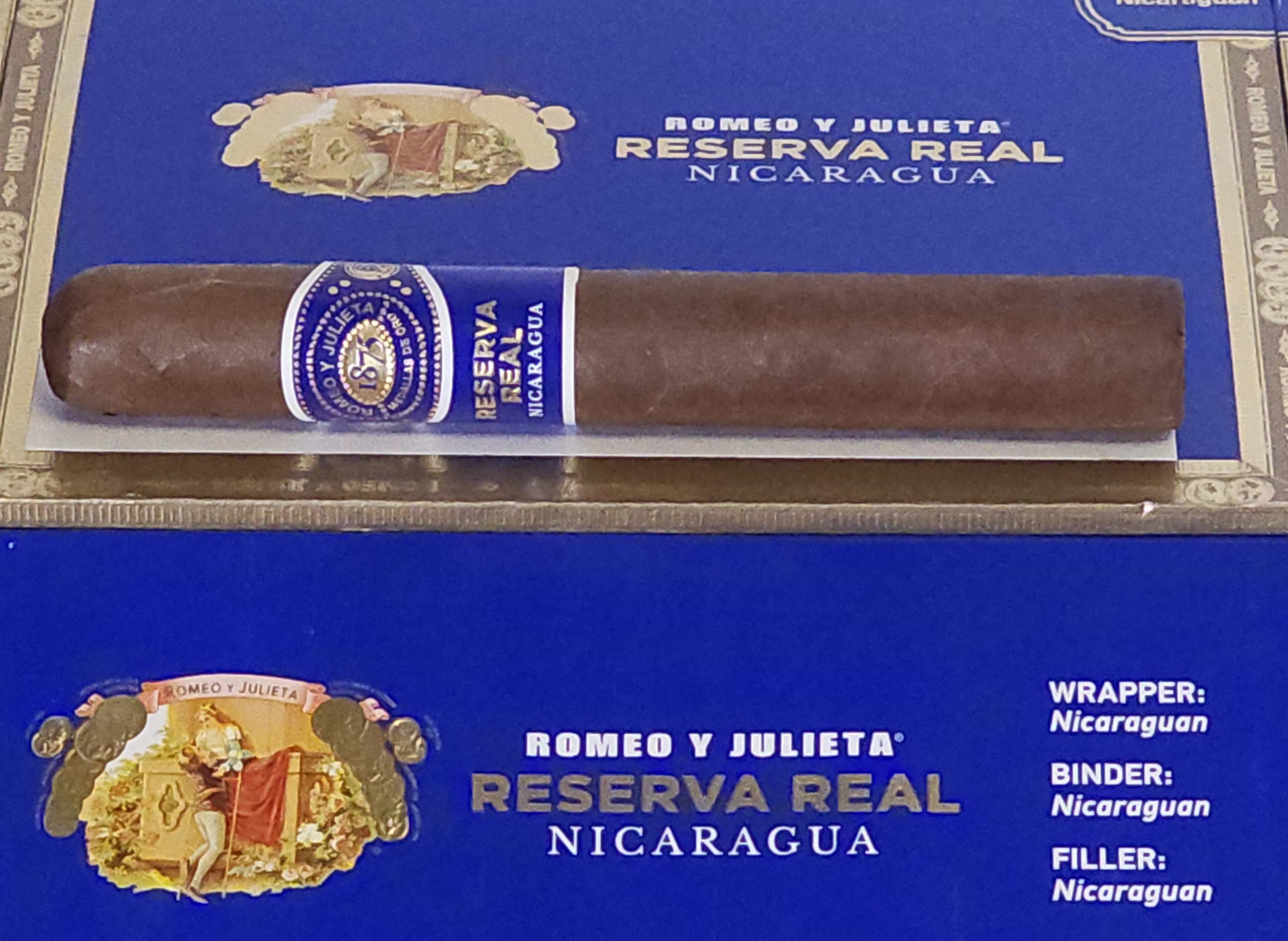 One of Romeo Y Julietas most popular blends, crafted to perfection using the combined efforts from two of the biggest names in the industry, AJ Fernandez and Rafael Nodal.After receiving an incredible 93 rating, the Real Nicaragua became one of the best selling cigars around. People from all over the world sung the praises of this cigar, and it culminated in becoming the #9 cigar of 2022. Country of Origin: NicaraguaFactory: Tabacalera AJ Fernandez Cigars de Nicaragua S.A.Wrapper: NicaraguaBinder: NicaraguaFiller: NicaraguaRelease Date: May 15, 2020Flavor Profile:Candied fruit, a touch of leather and mild coffee, gingerbread, toffee and a hint of white pepper.
